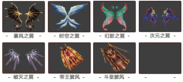 | 一代翅膀 国王卷轴 玛雅之石 | 王者披风 | 圣导师 | ||