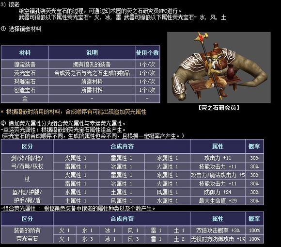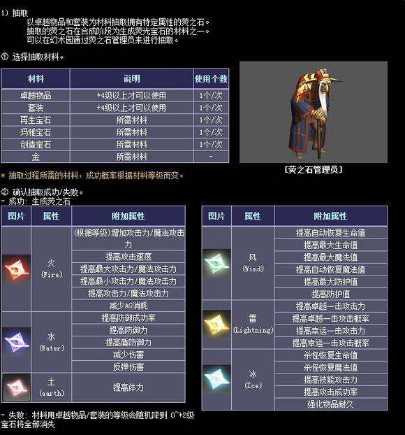 | 荧石属性 | 等级1 | 等级2 | 等级3 | 等级4 | 等级5 | 概率 |