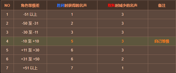 纷争区域 PVP 的名声获得 / 减少