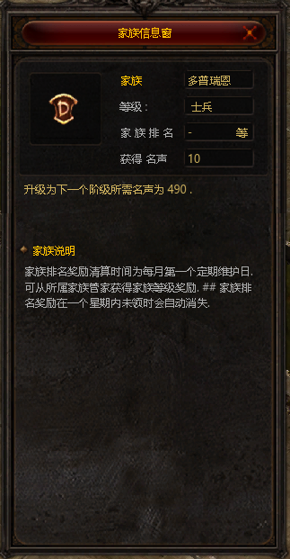 根据获得的名声多寡决定玩家的排名,一个月之内贡献最多的玩家可以获得该家族赠送的奖励